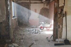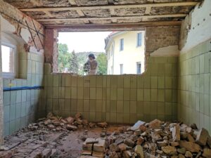 - 2021 – 2022Nach der Schlüsselübergabe im Spätherbst 2021 begannen die ersten Erkundungen, um den Zustand des Hauses zu erfassen, Prioritäten zu setzen und die nächsten Sanierungsschritte festzulegen. Schon bald zeigte sich, dass einiges auf uns zukam – und wir packten es Schritt für Schritt an.