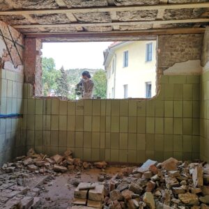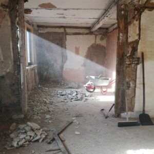 - 2021 – 2022Nach der Schlüsselübergabe im Spätherbst 2021 begannen die ersten Erkundungen, um den Zustand des Hauses zu erfassen, Prioritäten zu setzen und die nächsten Sanierungsschritte festzulegen. Schon bald zeigte sich, dass einiges auf uns zukam – und wir packten es Schritt für Schritt an.